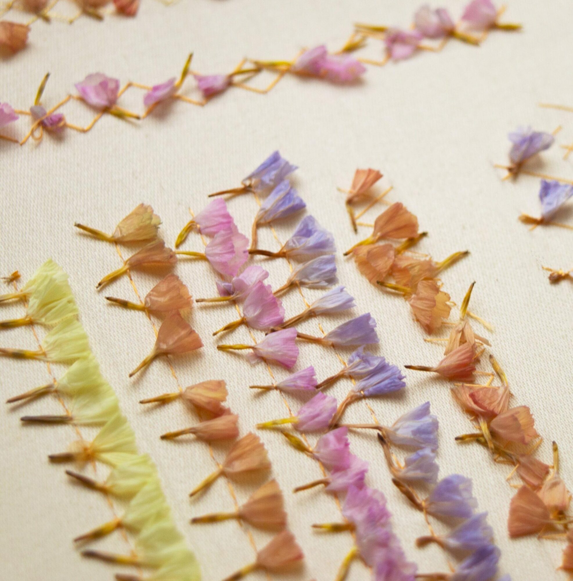 During this four-hour workshop, Katerina will introduce a range of hand embroidery techniques that use dried plant materials as alternative textile embellishments. Participants will learn how to incorporate materials such as lavender seeds, cornflowers, dahlia petals and rosemary alongside traditional stitches, creating richly textured and sensorial embroidery samples.